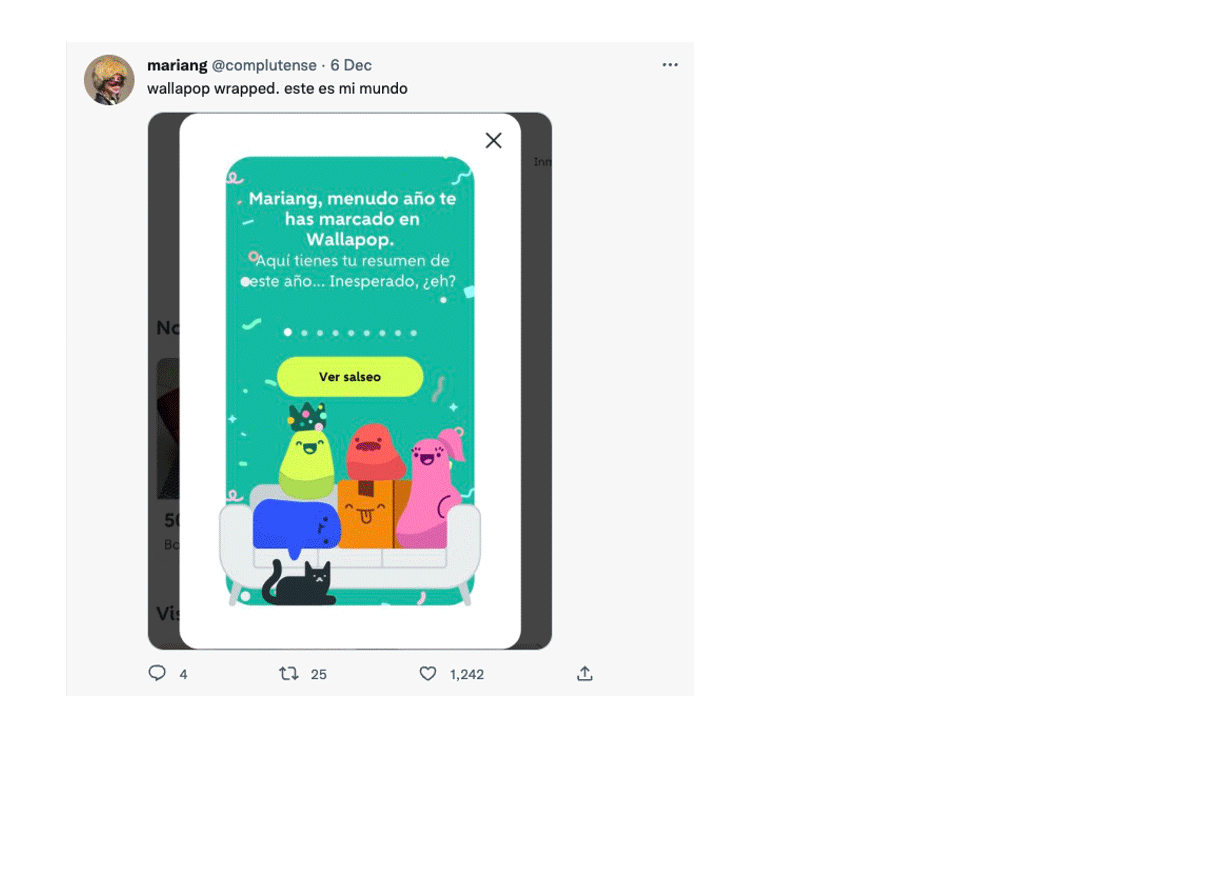 El Salseo is Wallapop’s annual Wrapped—a personalized recap that allows users to look back on their activity over the past year, celebrating everything from their number of purchases and sales to the days they were most active. The goal was to build a meaningful connection with users by showcasing their unique journey and impact on the platform.